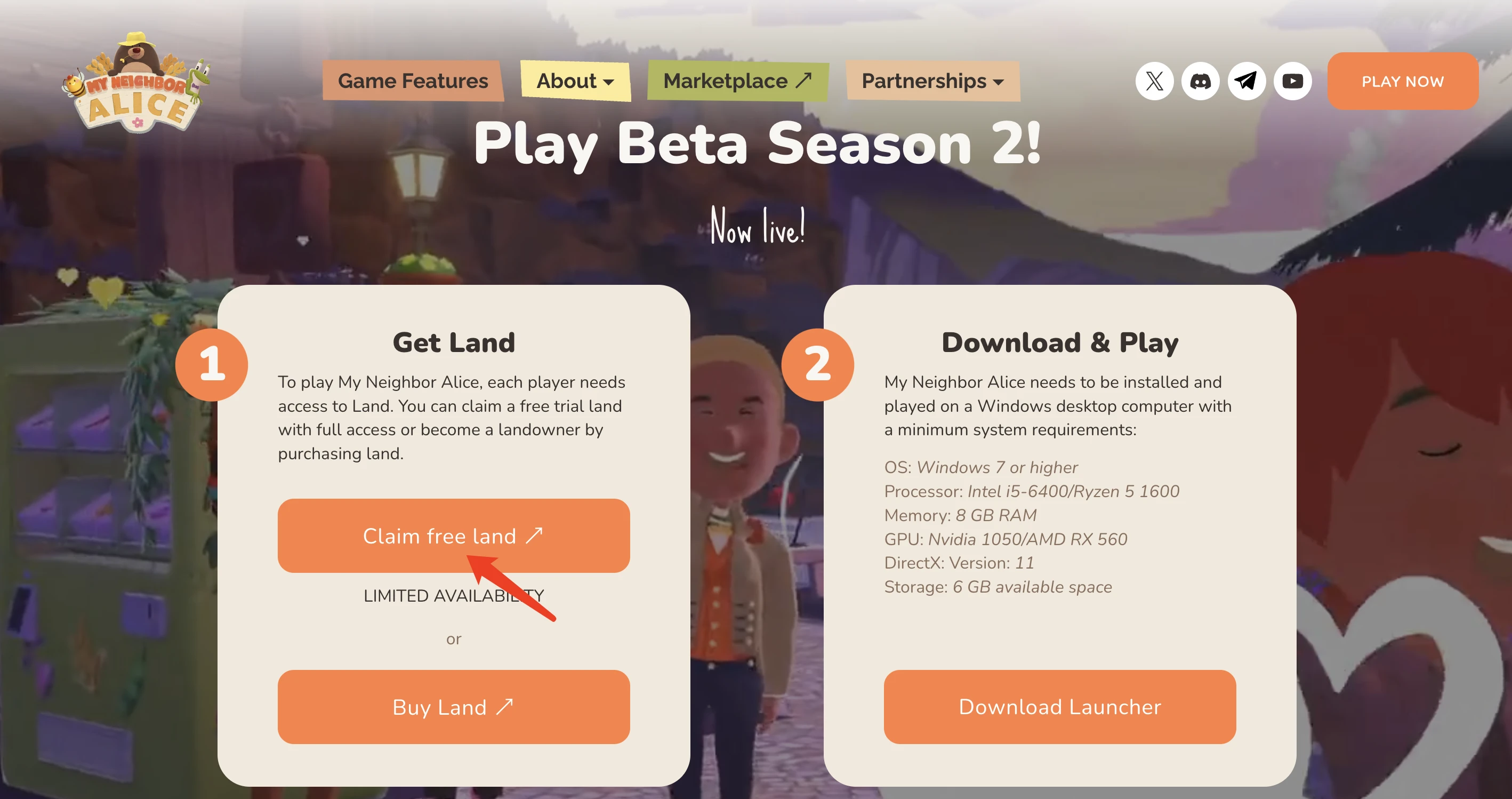STEP 1. 根据官推提示进入游戏网站( 点击此处 ),连接 MetaMask 钱包并切换到 BSC 链领取一块免费土地。