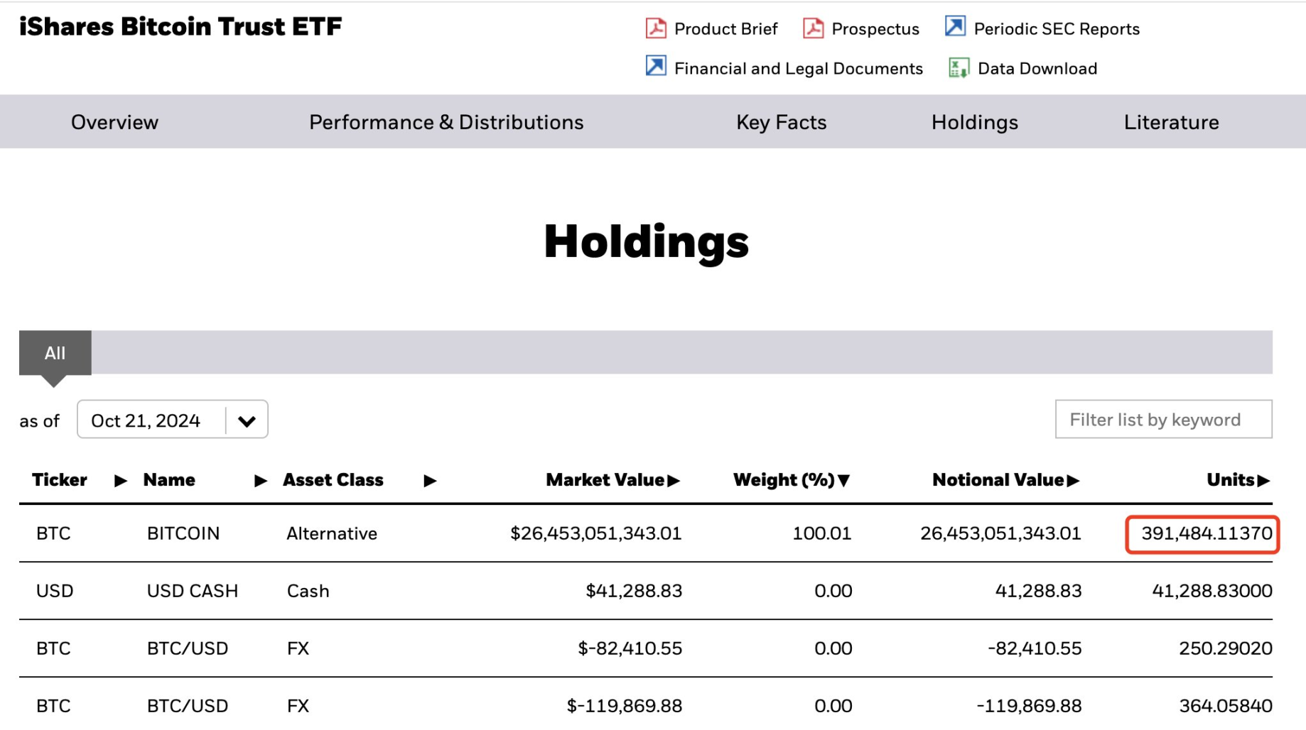 从数据上看, 10 月 14 日至 10 月 21 日,比特币现货 ETF 持续 7 日净流入,尤其是贝莱德(BlackRock)ETF IBIT 净流入超 15 亿美元,使其目前持有的 BTC 数量升至 391, 484 枚(价值约合 264.5 亿美元)。比特币的价格也从 62300 美元上涨超过 69000 美元。