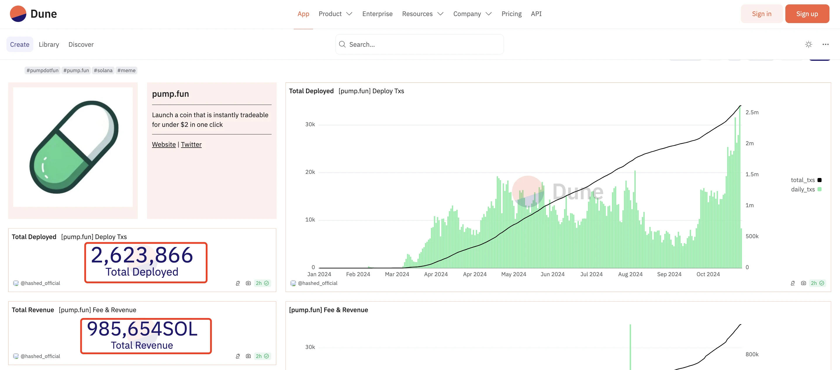 截止 10 月 23 日,据 Dune 数据 显示,pump.fun 平台相关运行数据如下: