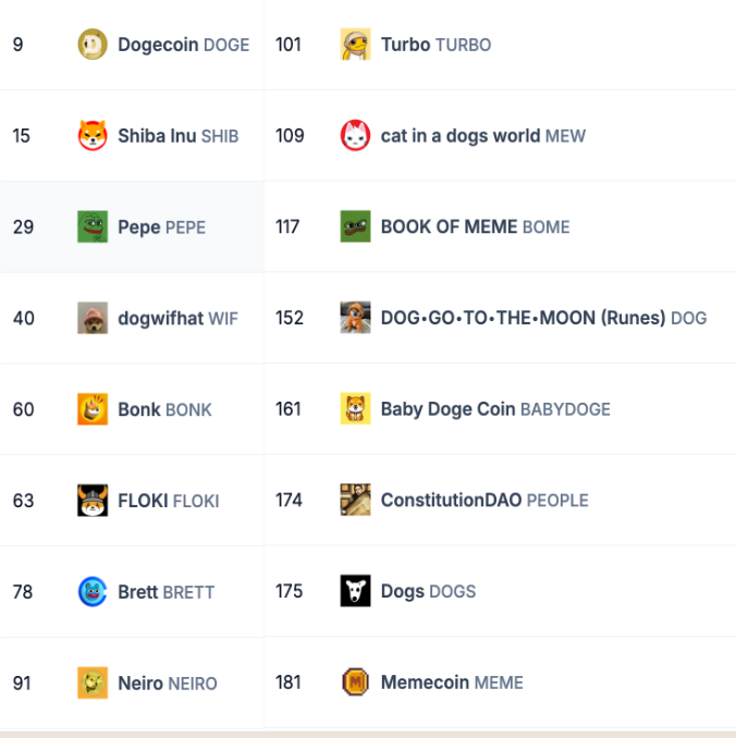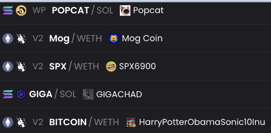这 5 种代币里,最能体现这两个方向的代币是 $POPCAT、$MOG、$SPX。