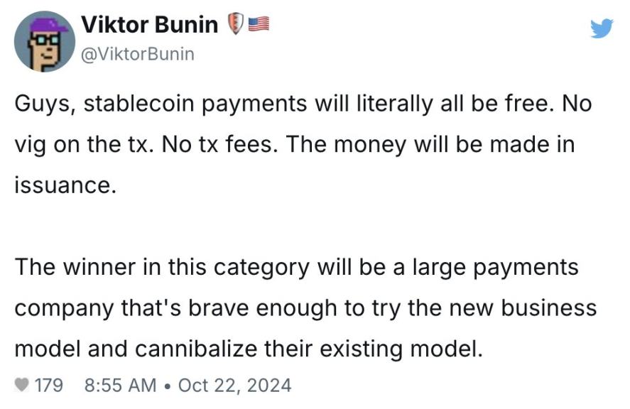 在某种程度上,传统金融中的许多不同参与者开始看起来非常相似,因为他们都希望使用稳定币来提供全栈金融服务(支付、银行、卡服务等)。