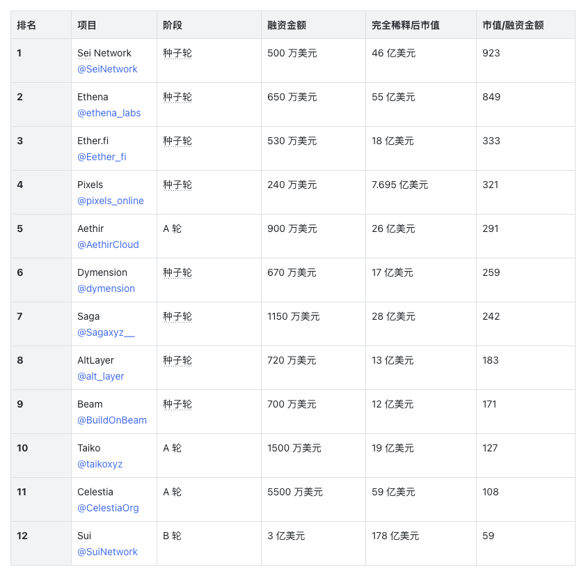 我们通过计算每轮融资在第三季度末的完全稀释市值 (FDMC) 与融资金额的比值来进行排名。