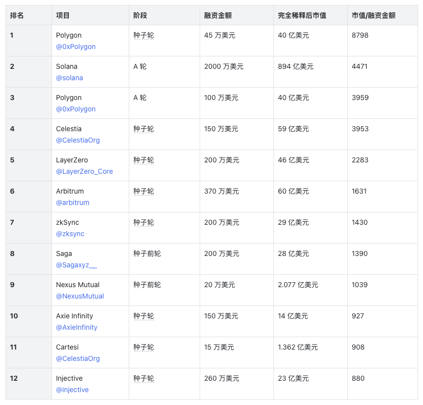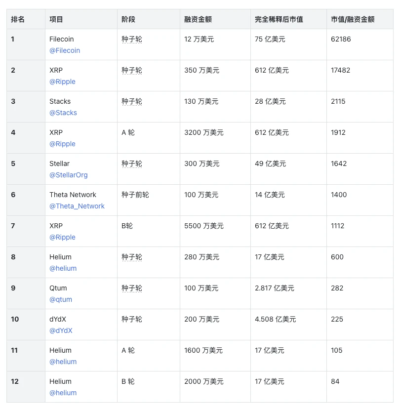 在找出回报最高的投资项目后,我们接下来看看哪些基金参与了这些融资轮次。