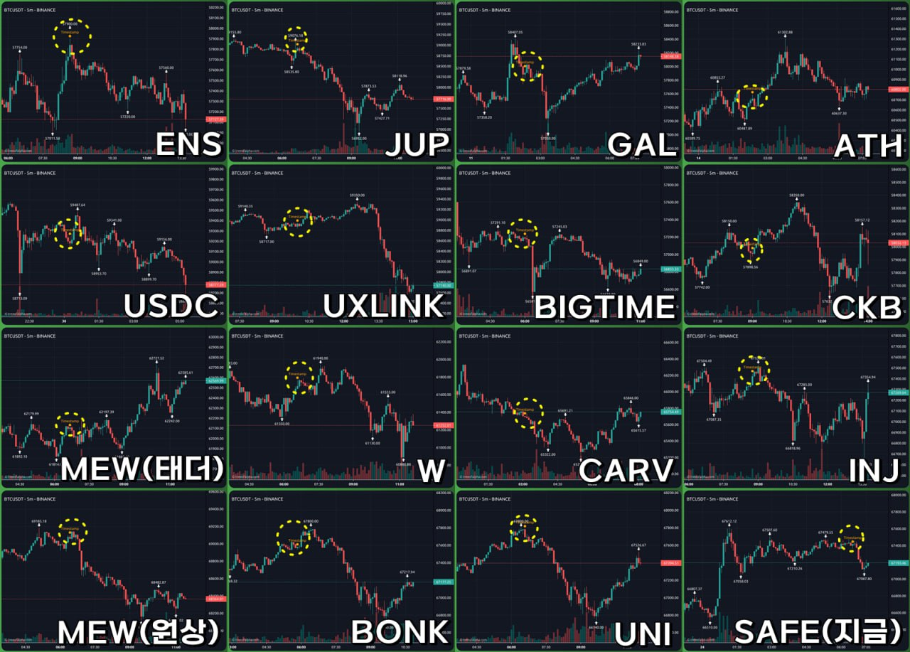 不过值得一提的是,韩国加密社群 minchoisfuture 昨晚在其 TG 频道 中指出,综合 Upbit 近 16 次上币数据,将得到一个惊人的发现 —— Upbit 每次上架新币后,比特币的价格却往往表现出下跌趋势: