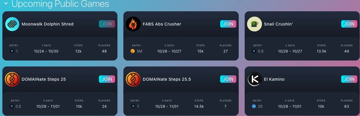 除此之外,在 Moonwalk 中,用户可以参与私人或公共游戏。私人游戏适合与朋友在封闭环境中互动,而公共游戏则让用户可以加入更大的社区,增加社交互动。游戏还可以由赞助商支持,增加额外的奖励,激励参与者更积极地达成健身目标。