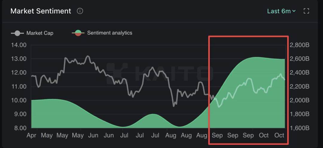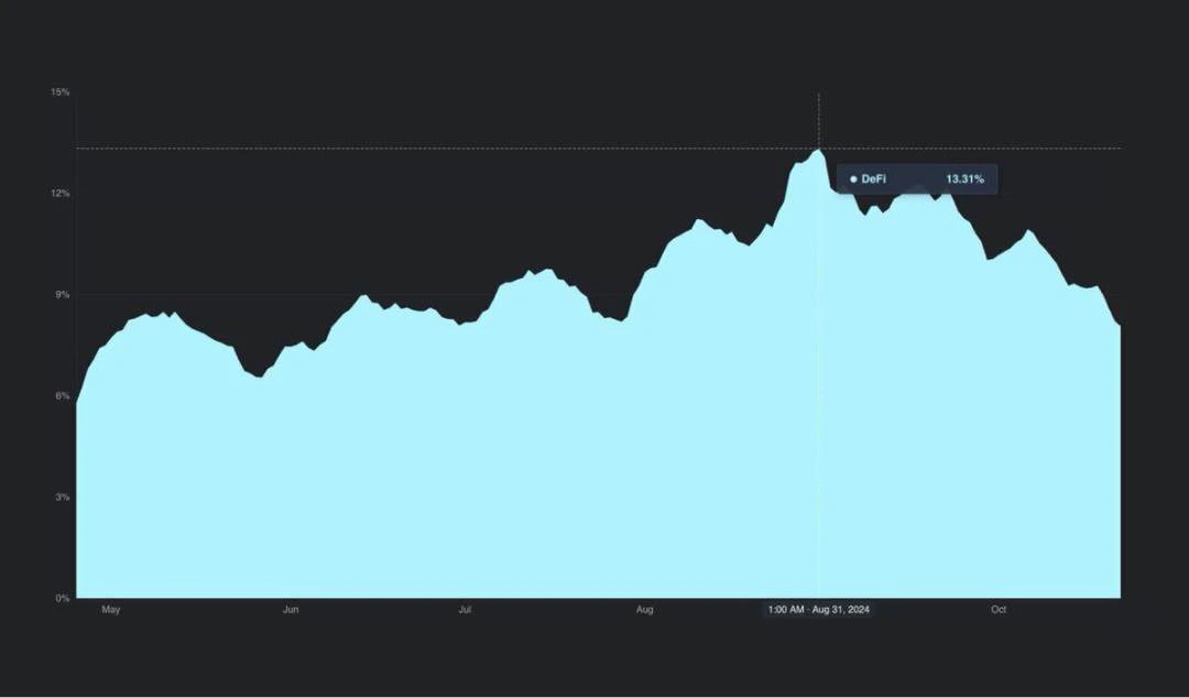 DeFi 的用户心智份额在 8 月达到顶点。资料来源:KaitoAi