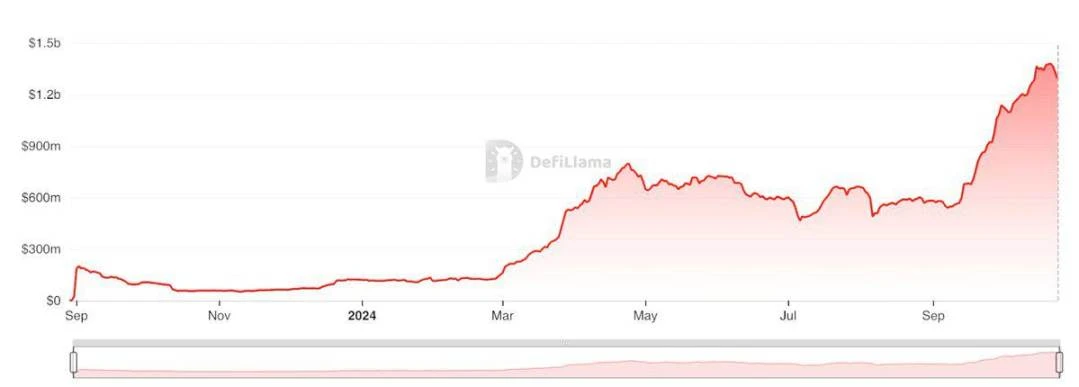 原因是什么?Aerodrome。Aerodrome 的 TVL 现在超过 13.6 亿美元,使其成为 Base 的 DeFi 生态系统中的顶级参与者。