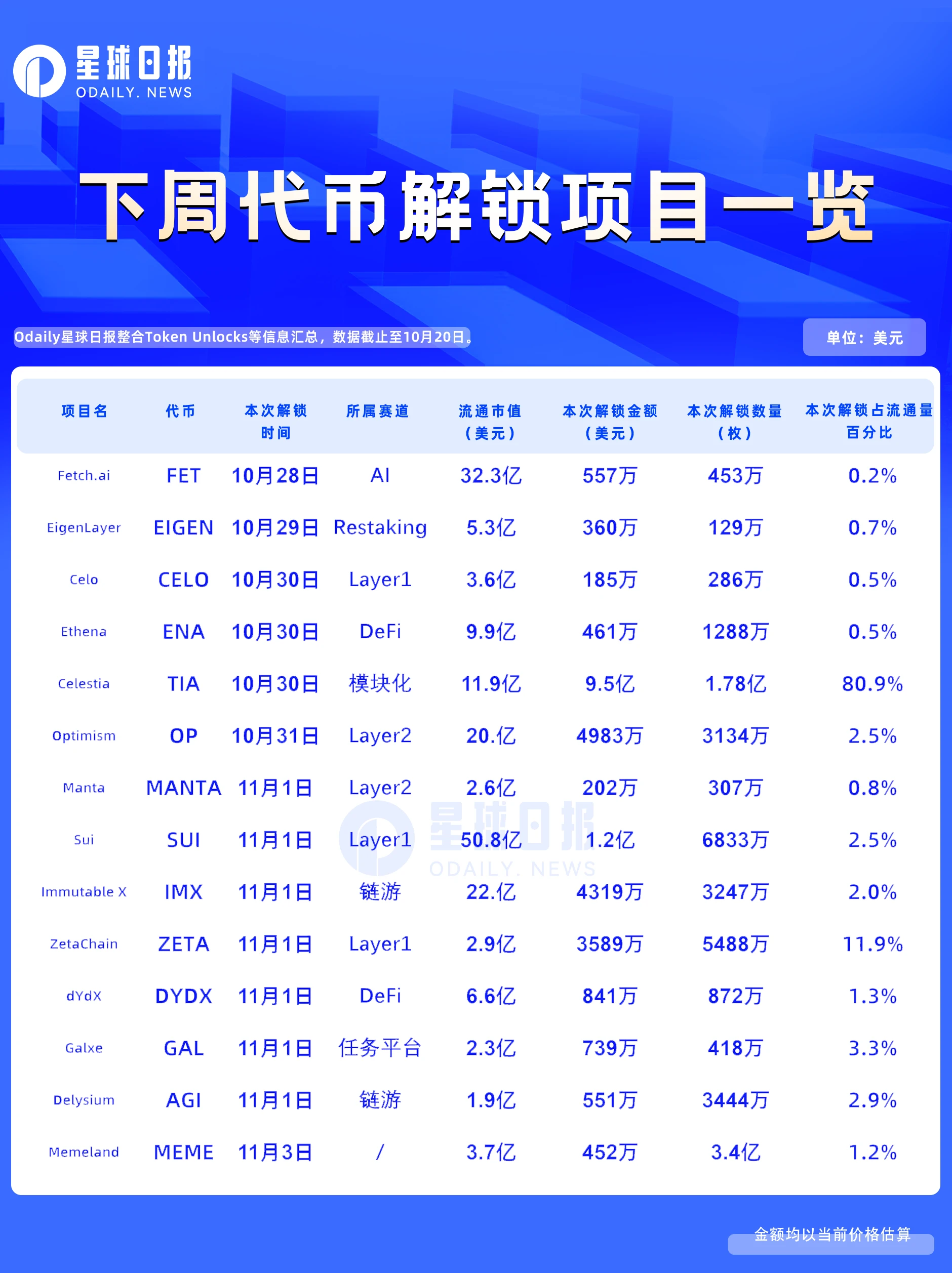 一周代币解锁:TIA本次代币解锁量超流通量的80%