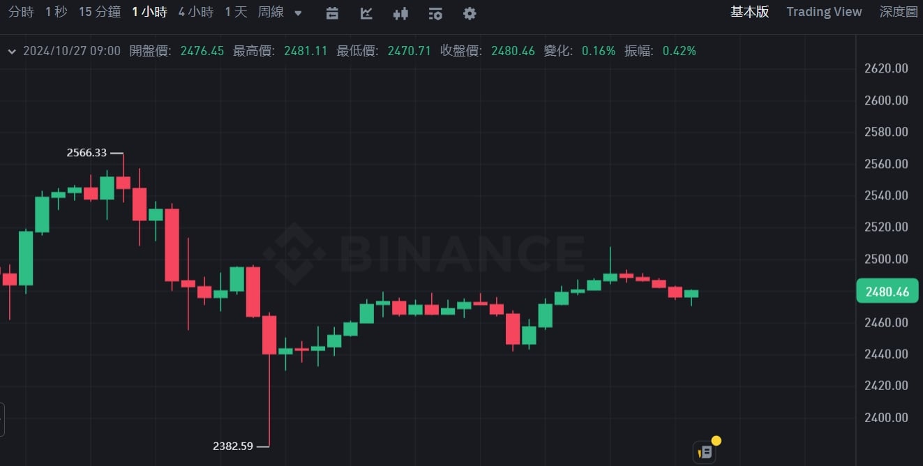 以太坊走势与比特币相似,在 25 日攀升至 2566.33 美元后急杀,当日清晨触及 2382.59 美元低点,随后回升至 2400 美元上方,近 2 日在 2440 美元至 2500 美元之间持续震盪,现报 2470 美元,近 24 小时上涨 1.4%。