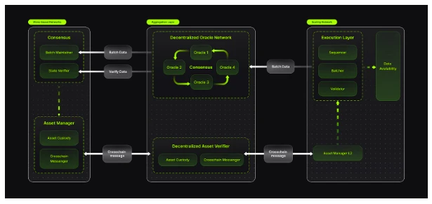 Decentralization Asset Verify Layer: 验证包括资产在内的跨链通信在一、二层网络之间流动。通过提议和审查流程等机制,检验跨链请求和网络状态的有效性,以增强交易的安全性和流动性。