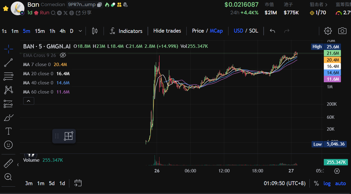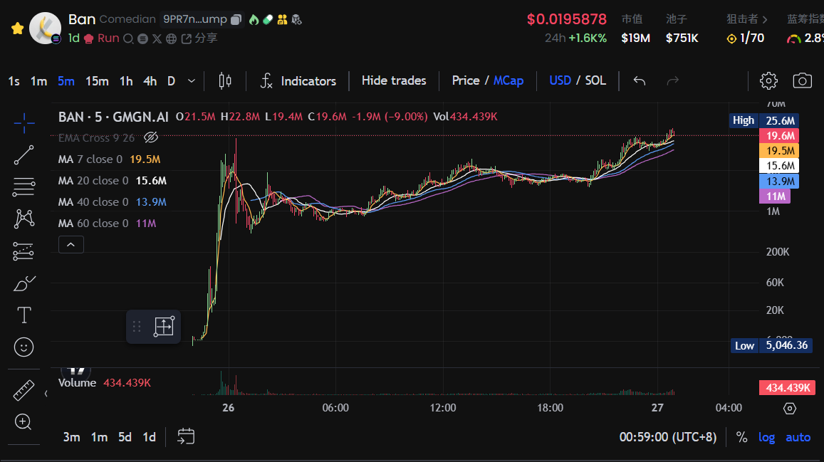 截至撰稿时,$Ban 的最高市值已经触及 2500 万美元。