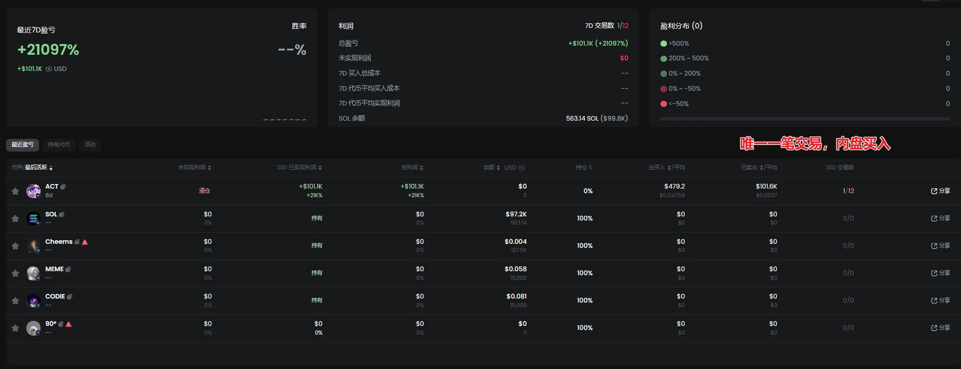 此外经作者对链上数据分析,ACT 在发行之初明显为“阴谋”代币 ,存在多个从未交易过任何代币的地址,在内盘买入 ACT 后,获利数万至数十万美元抛售,然后再无动作,例如有以下地址: