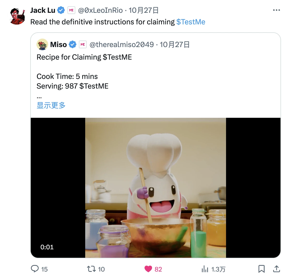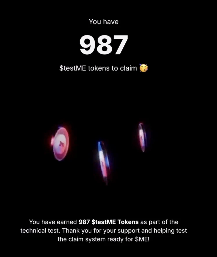 在多位团队成员披露的视频中,每个人领取到的 testME 数量均为 987 个。 Magic Eden 亦曾在官方文档中提及“ 每个符合条件的地址只能领取一次 testME,所有符合条件的钱包将收到相同固定数量的代币” ,所以这可能就是用户单个地址可获取的最终空投数额。
