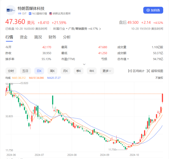 即便排除加密领域,在其他金融板块,自从9月特朗普胜选概率增加以来,市场交易也透露出了类似的信号。鉴于特朗普更为激进的关税政策,其曾宣称可能对进入美国的所有商品征收无差别的10%基准关税,并对中国加征60%或更高的关税,近期人民币、墨西哥和越南汇率已然走弱。而在特朗普支持的传统能源领域,根据中金研究部数据,截至10月24日,9月26日以来,油气能源大涨5.8%,清洁能源指数则大跌9.4%。从社媒而言,自9月23日,特朗普传媒科技集团(DJT)涨幅高达惊人的289.79%,押注之势明显。