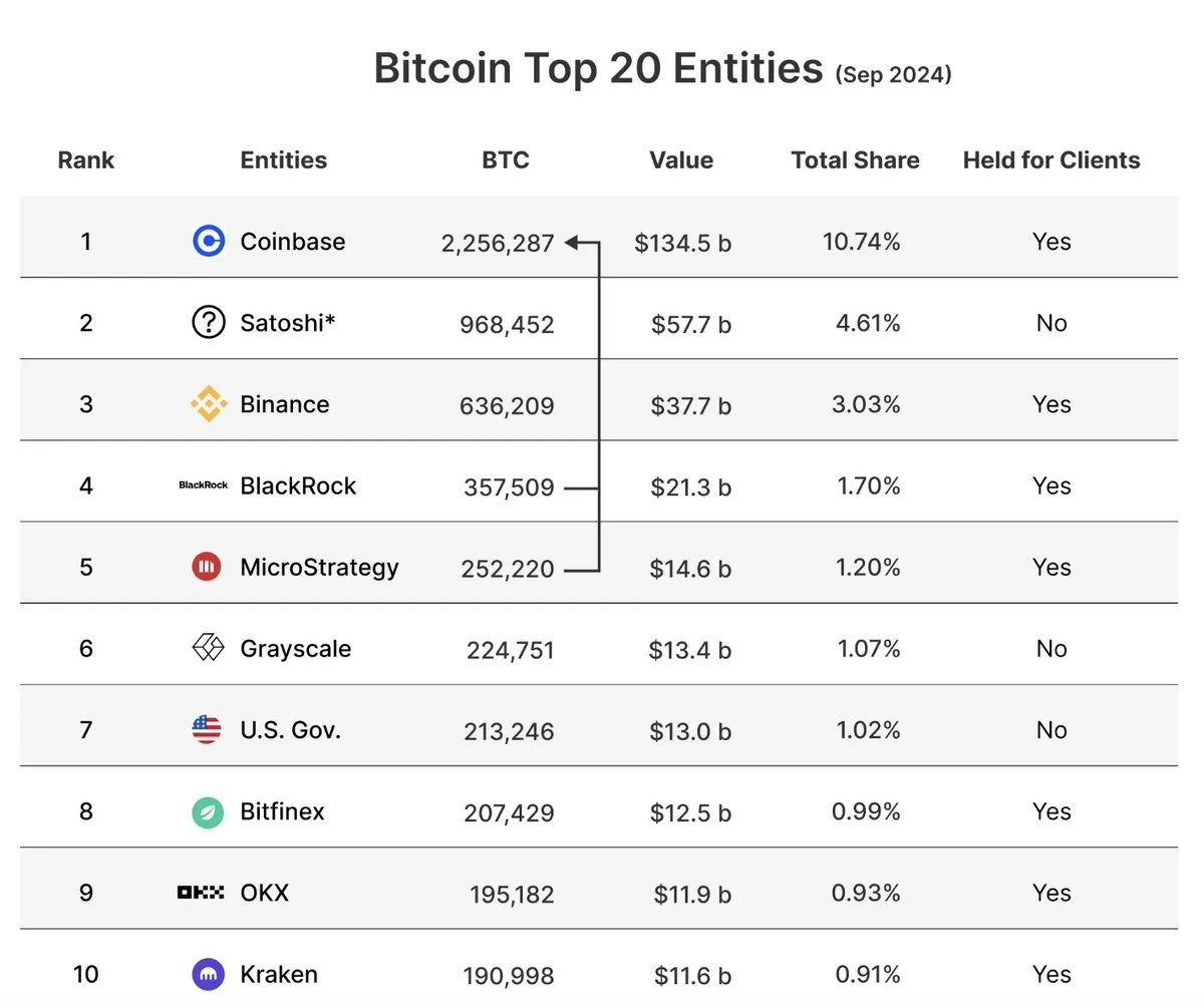 这些 BTC 在哪里呢?答案是在一些托管服务商的钱包里,它们也被静置着。