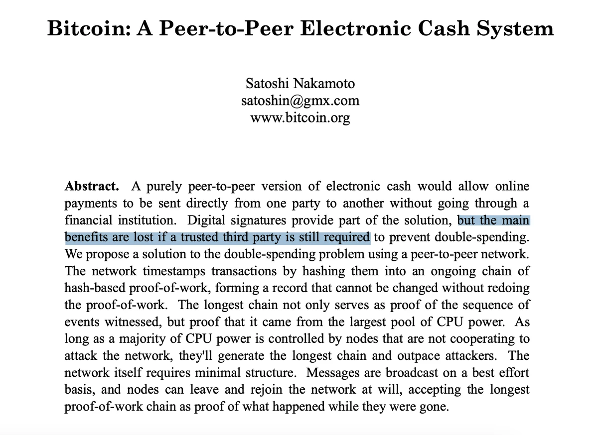 中本聪在白皮书中曾警告过我们这个问题: “只要在你和你的 BTC 之间存在第三方,价值就会丧失。”