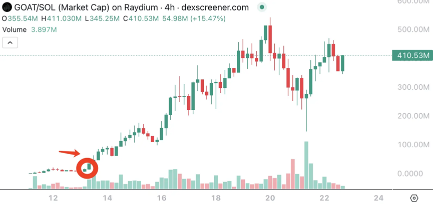 除了 MOODENG,Moonshot 还见证了多个表现亮眼的 MemeCoin,如 SPX 6900 和 AI 模因币 GOAT。SPX 6900 在登陆 Moonshot 时市值不到 3000 万美元,但在短短一个月内,其市值便暴涨至 9 亿美元。而近期备受瞩目的 AI 模因币 GOAT 代币,在登陆 Moonshot 后,市值也从不到 4000 万美元飙升至 5 亿美元。这些案例再次证明了 Moonshot 出色的“上币效应”,许多 meme 项目方都开始争先上线 Moonshot 交易所,这样也为 Meme 市场注入了新的活力与机遇。除了 MOODENG,Moonshot 还见证了多个表现亮眼的 MemeCoin,如 SPX 6900 和 AI 模因币 GOAT。SPX 6900 在登陆 Moonshot 时市值不到 3000 万美元,但在短短一个月内,其市值便暴涨至 9 亿美元。而近期备受瞩目的 AI 模因币 GOAT 代币,在登陆 Moonshot 后,市值也从不到 4000 万美元飙升至 5 亿美元。这些案例再次证明了 Moonshot 出色的“上币效应”,许多 meme 项目方都开始争先上线 Moonshot 交易所,这样也为 Meme 市场注入了新的活力与机遇。