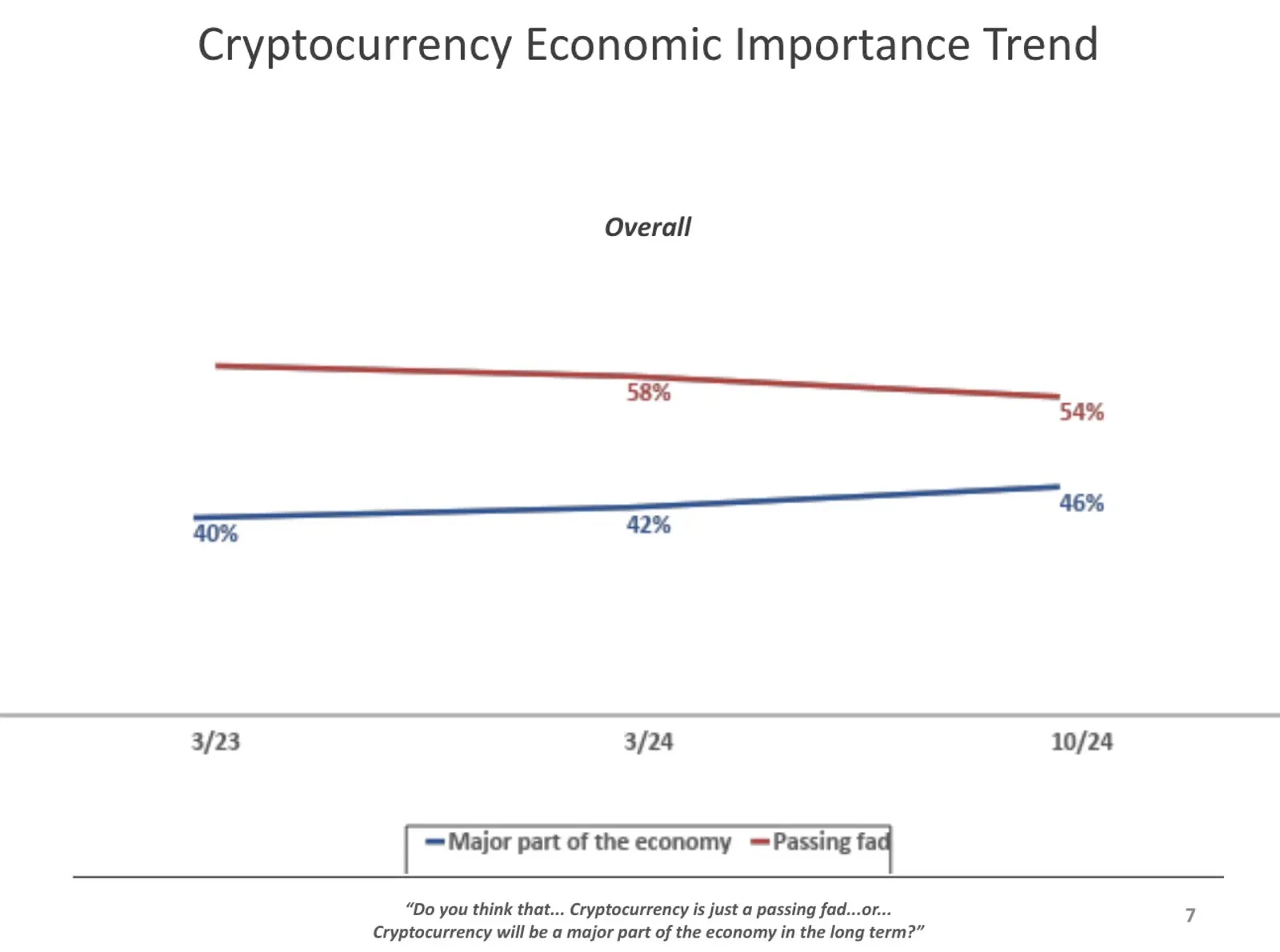 值得注意的是,选民对共和党在加密货币政策上的信任度有所上升,这可能会影响独立选民的投票选择。此外,越来越多的选民认为加密货币将在未来经济中扮演重要角色,这种观点的转变反映出对 DeFi 的认知正在增强。