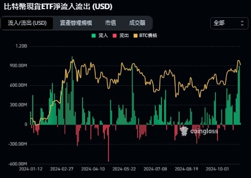 1.比特币现货 ETF 资金大量净流入