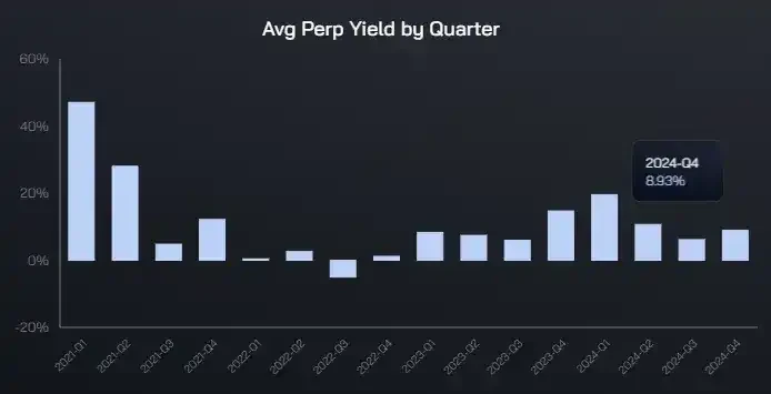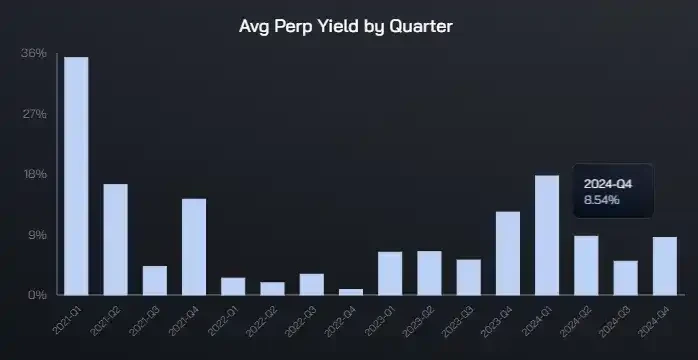 BTC 和 ETH 永续合约套利季度平均收益率,数据来源:https://app.ethena.fi/dashboards/hedging