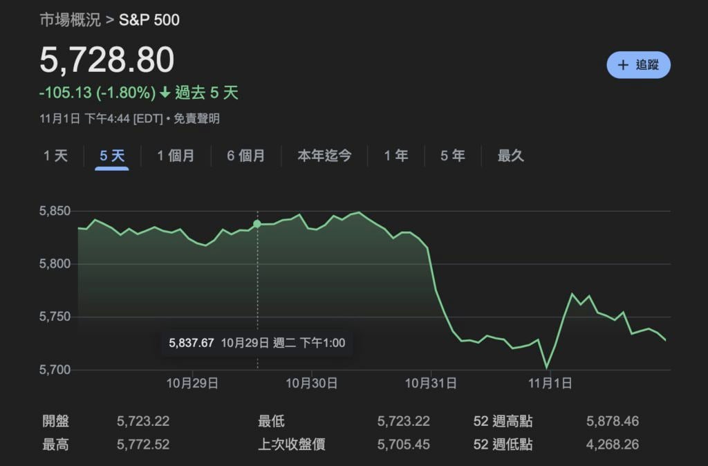 另外下周还有个重要消息是,联準会将举办 11 月份的利率决策会议,预计将在美东时间 8 日宣布,同样可能对全球市场带来大波动。