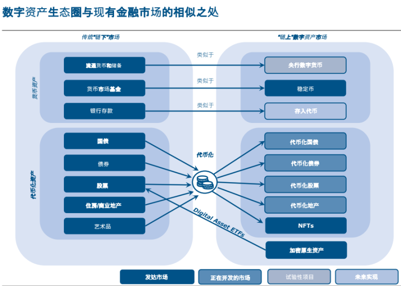 代币化是在分布式账本 / 区块链等可编程平台上以代币形式数字化代表权利的过程,代币化有潜力将可编程、可互操作的账本的优势释放到更广泛的传统金融资产中。代币化的主要特征和优势有: