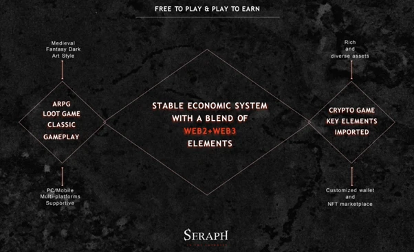 在游戏性方面,SERAPH 在继承经典的暗黑风装备强化、角色养成与地牢探索玩法的基础上,融入了 AI 伴侣以及多种 MMO 元素,进行了诸多创新,如多人组队、PVP 排行榜和玩家交易市场等,大幅提升了游戏的可玩性和社交性。代币经济方面,玩家可以免费进入游戏,并有机会通过游戏获取稀有资产。同时,玩家还能直接使用独特 NFT 装备,生产“灵魂晶石”(Soul Spars)。灵魂晶石在游戏中的消耗场景广泛,并有多个调节机制来对抗通胀,确保游戏经济的稳定发展。此外,SERAPH 设置了赛季奖励,激励玩家打造专属装备,推动装备的流通与交易,从而实现一个多样化且不断进化的经济生态。