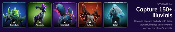 Illuvium 由生态系统中的四个游戏组成,包括 Illuvium Overworld、Illuvium Arena、Illuvium Zero 和 Illuvium Beyond。游戏中有五个职业是 Guardian、Fighter、Rogue、Psion 和 Empath。还有五种亲和力:水、土、火、空气和自然(例如 Earth Psion)。此外,最多可以堆叠和组合两个亲和力以获得能量提升。玩家将他们捕获的 Illuvial NFT 保存在他们的加密钱包中的区块链上。在游戏中,他们将角色存储在 Shards 中。碎片的强度不同,更强的碎片能够支持更强大的 Illuvials。自项目启动以来,Illuvium 便以其丰富的生态系统和有趣的游戏设定吸引了众多web3玩家的关注。