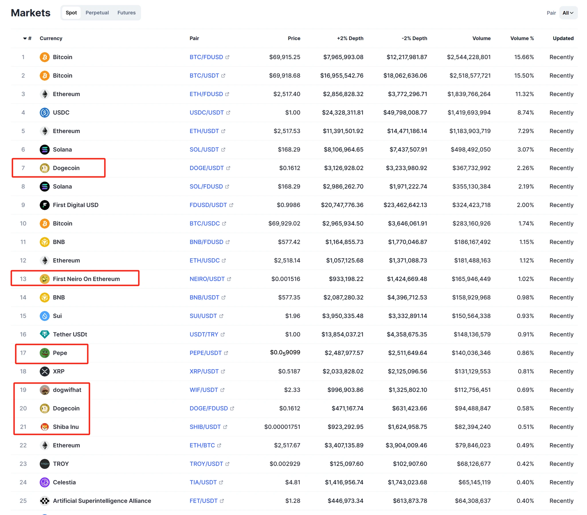 流动性不高和资金容量受限: 在 Meme 的早中期阶段,即链上市场时期,Meme 的流动性并不高,这意味着其庞大的市值和交易量中存在相当一部分的水分。由于流动性不足,大资金在买入或卖出时会遇到较高的滑点,这导致交易磨损成本增加。因此,Meme 市场的链上资金容量相对有限,机构难以在大规模进出而不对价格产生显著影响。这种局限性不仅增加了交易的难度,也限制了市场的深度和广度,使得 Meme 市场在面对大规模资金流动时显得更加脆弱。