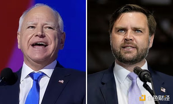 副总统候选人:蒂姆·沃尔兹(左)和 JD 万斯。图片来源:美联社