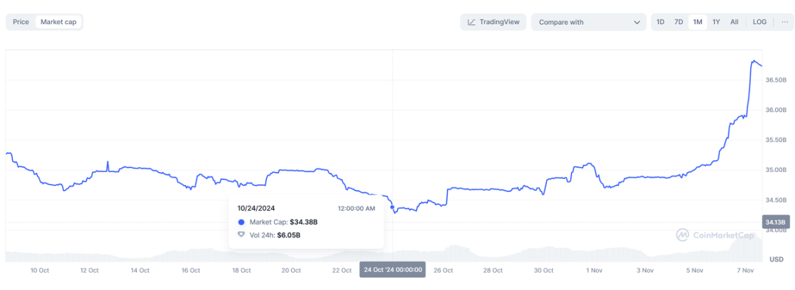 特朗普胜选之后,近日加密市场行情迎来大暴涨。比特币、以太坊、Meme、再质押、DeFi、RWA、L2、AI,几乎你所能想到的大多数赛道绝大多数币都迎来普涨,区别只是涨幅大小而已。