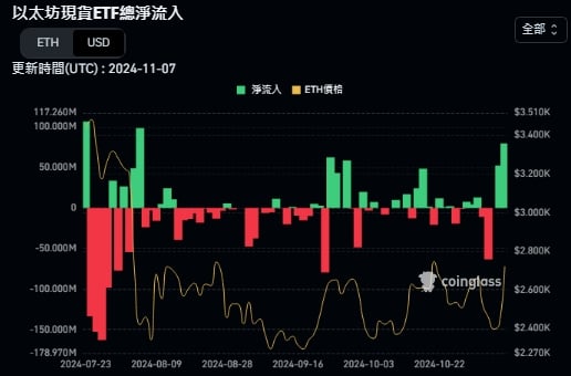 本周以太坊 ETF 资金 净流入约 1.843 亿美元 。