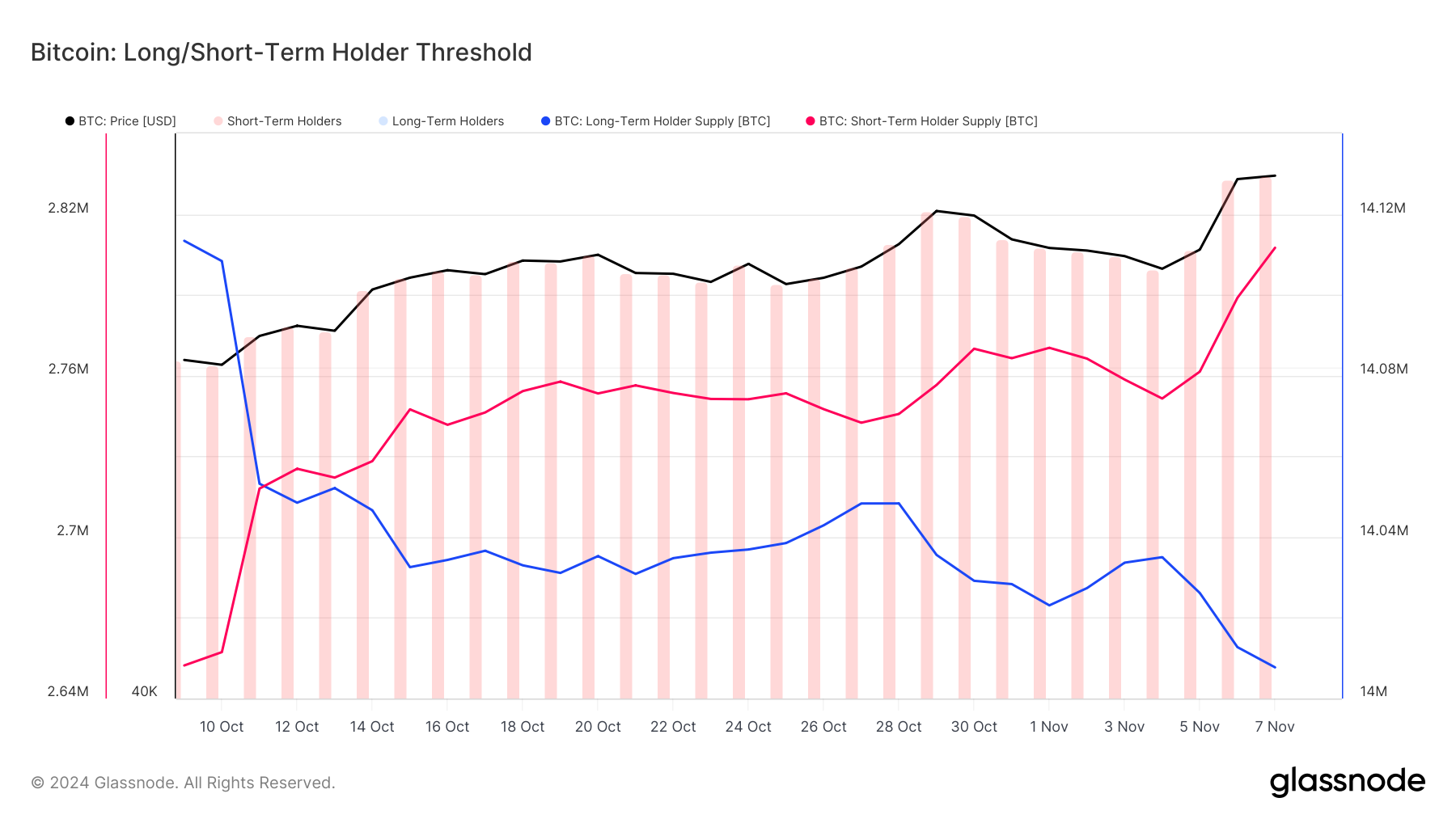 本周数据反映出短期投资者的活跃度增加,成为市场的主要动力来源,而长期持有者的减仓则为市场后市带来一定不确定性。未来几周需持续关注长期持有者的动态,以判断市场趋势的可持续性。