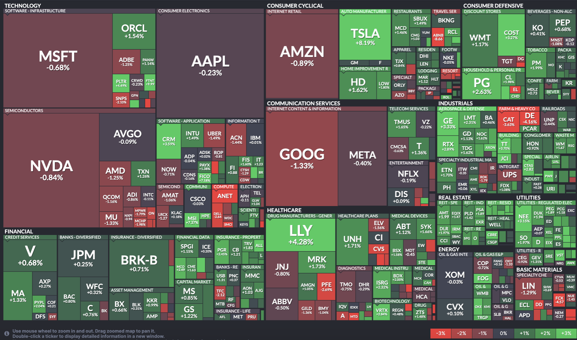 美股方面,三大指数以小幅涨势再创新高,其中特斯拉更续涨 8.19%:
