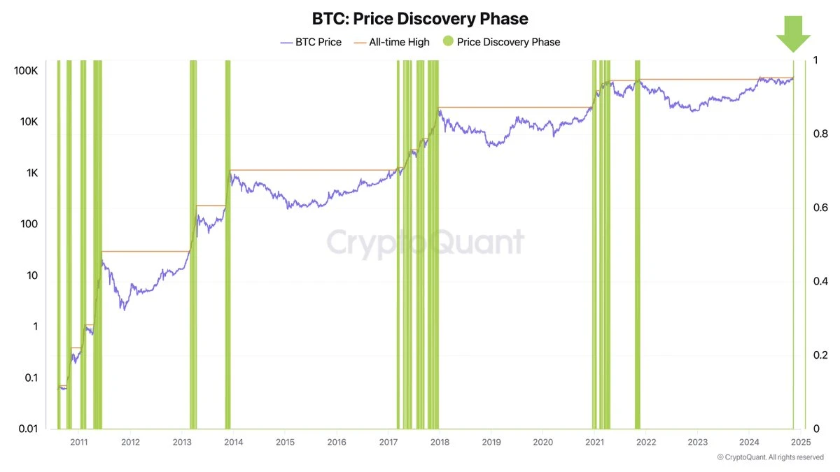 比特币多次创下历史新高,但并未显示出任何“过热”迹象,多位分析师指出,一些基本面因素表明比特币可能会进一步上涨。 “从基本面角度来看,市场并未显得过热,”Galaxy 研究主管 Alex Thorn 在一份市场报告中 表示 。加密分析公司 Nansen 分析师 Aurelie Barthere 也表达了类似的观点。“比特币在高交易量下突破历史高点,是选举后持续积极势头的明确信号。”