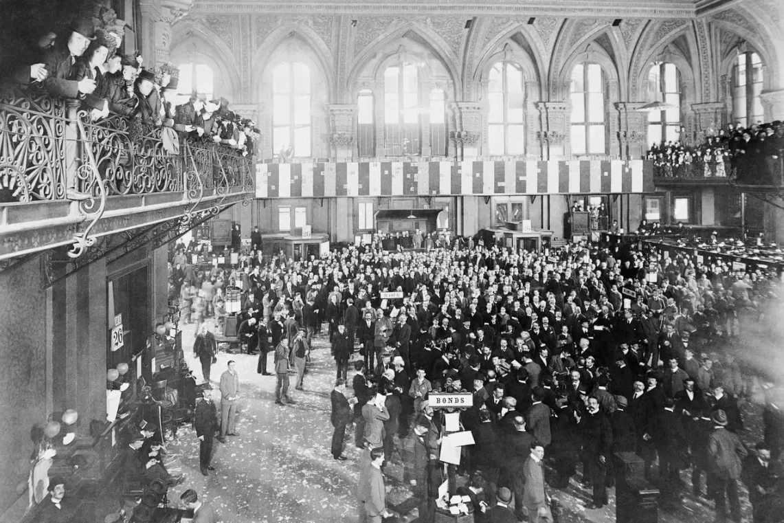 1889 年,投资者在纽约证券交易所大厅内进行交易