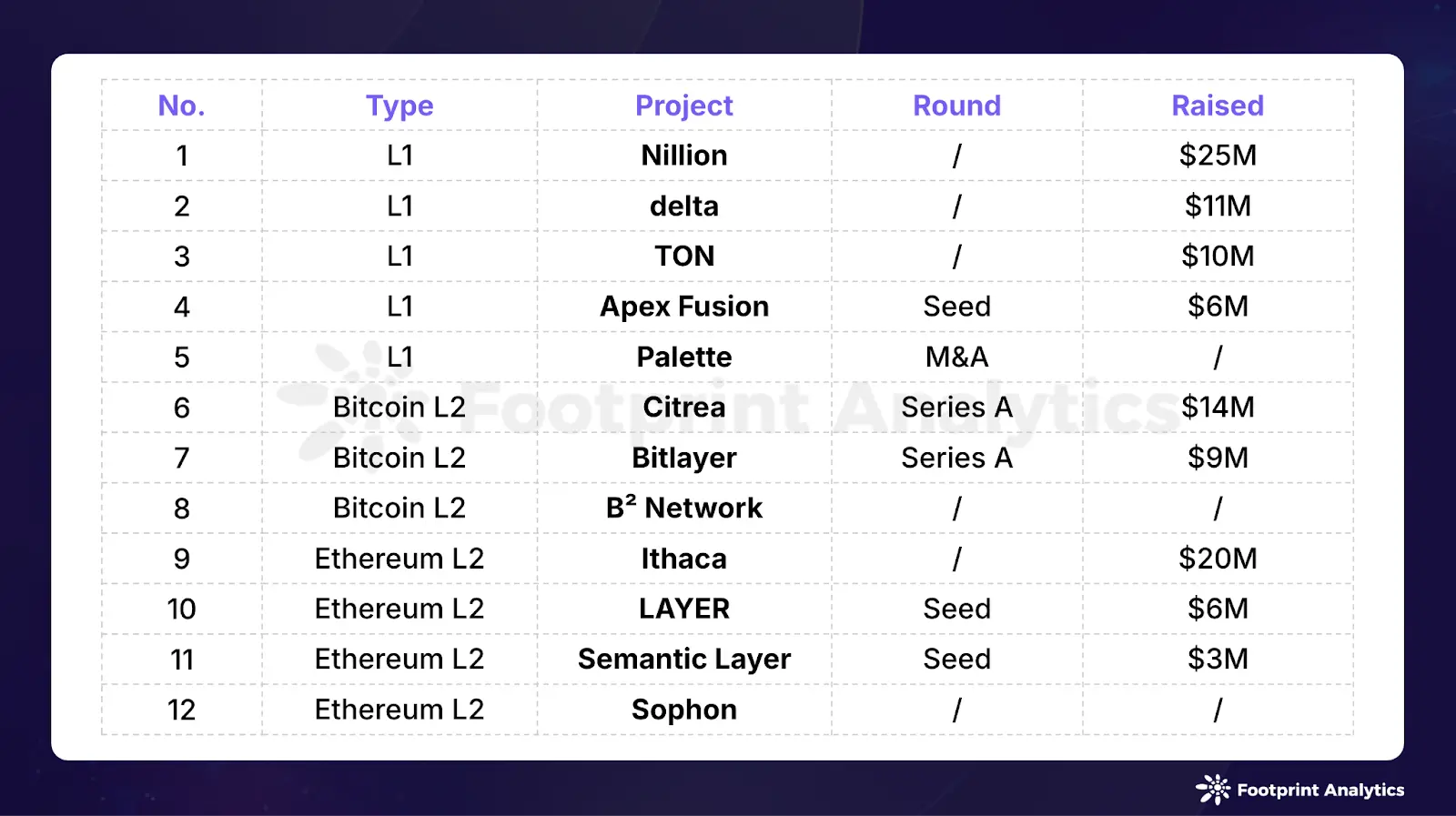 Layer 2 解决方案继续吸引投资者关注,横跨比特币和以太坊生态系统。比特币 Layer 2 平台 Bitlayer 和 B² Network 成功完成新一轮融资,而以太坊 Layer 2 领域则看到资金流向创新项目,包括 Ithaca、Semantic Layer、Sophon 和 LAYER。
