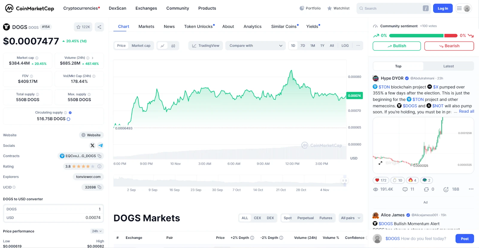 Dogs Community 是一个充满活力的社区驱动型计划,旨在利用 Telegram 庞大的用户群和本土 meme 文化来推广区块链技术。该项目以 Telegram 创始人最初创作的一只深受喜爱的狗吉祥物为中心,通过代币化贴纸等方式向数百万人介绍区块链技术。DOGS 代币的上涨不仅得益于其独特的 meme 文化和广泛的用户基础,还得益于其能够精准捕捉用户心理并打造出一系列深受用户喜爱的内容。