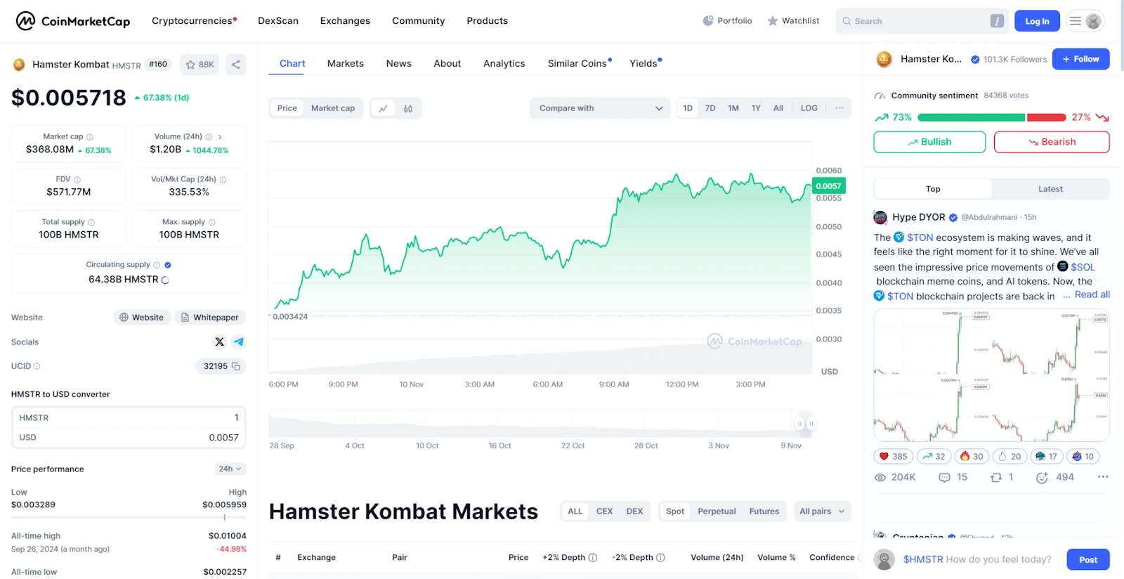 HMSTR,作为 Tap to Earn 领域的龙头项目,其 FDV 高达 5.71 亿美金,展现了市场对这一创新模式的强烈认可。凭借其在 Tap to Earn 领域的领先地位,HMSTR 有望在未来实现 10 倍的增长空间,达到 40 亿美金的预期估值。这一预测不仅基于其技术实力和市场占有率,更得益于其庞大的用户基础和活跃的社区氛围。