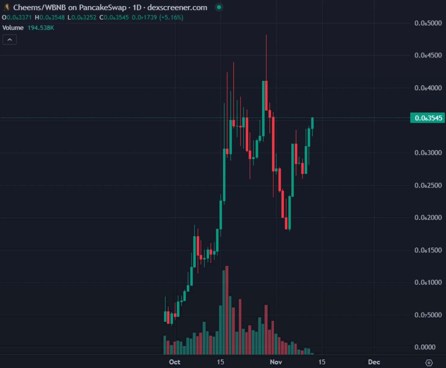 价格表现 :根据链上数据,Cheems 价格突破 0.0000003 美元,暂报 0.00000035 美元,市值突破 7200 万美元。