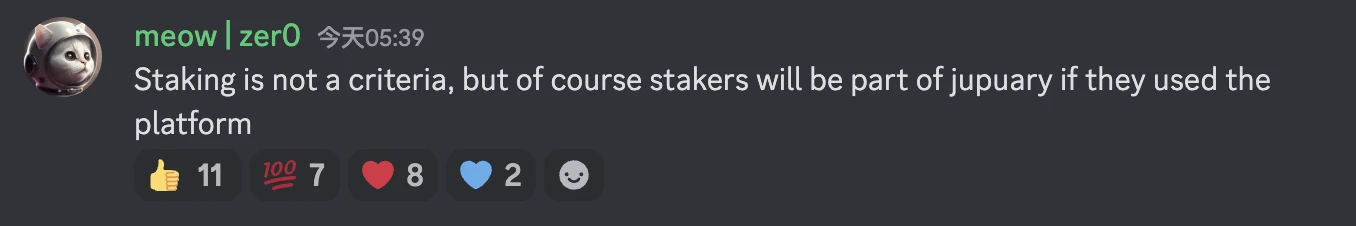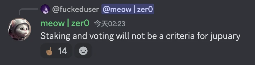 Jupiter 创始人 meow 曾表示空投将由社区驱动,并提及下一轮空投的标准与第一轮空投将“相当不同”;