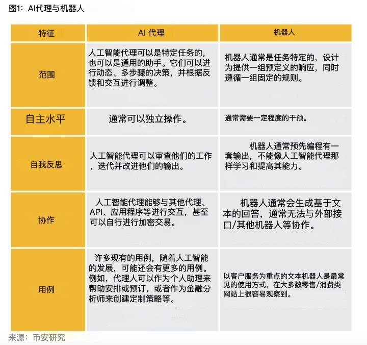 AI 代理:能与其他代理、API、应用程序交互;甚至可以独立进行加密货币交易