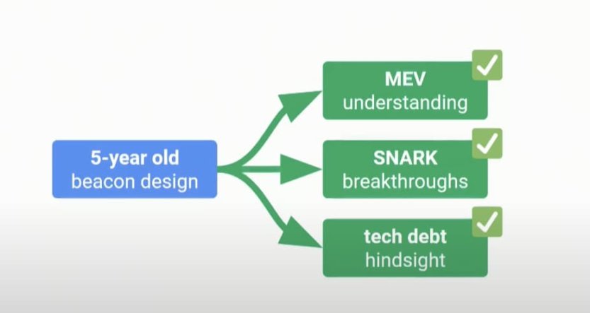 为何要对共识层进行大规模重新设计?Justin Drake 认为,当前的信标链已经过时,其规范在五年前被冻结,加之近年来,在 MEV 缓解、SNARKS(零知识简洁非交互论证)、zKVMs(零知识虚拟机)等领域取得了诸多突破性进展,因此,共识层的重新设计显得尤为迫切。