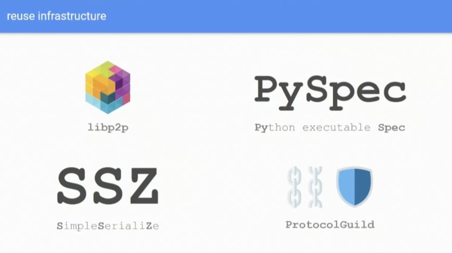 除此之外,以太坊还将继续沿用现有的基础设施,包括 lib p2p、SimpleSerialiZe、PySpec 以及 Protocol Guild。