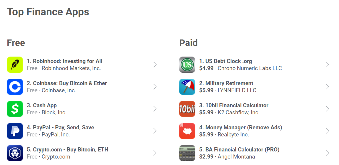 加密货币 App 霸榜美国理财工具排行榜