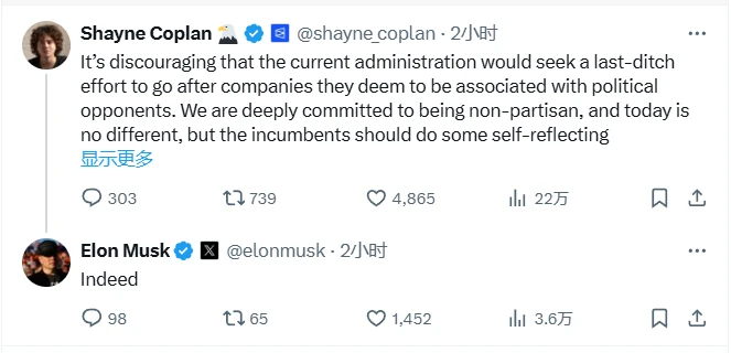 马斯克则在 Shayne 的评论区下秒回:“确实”。