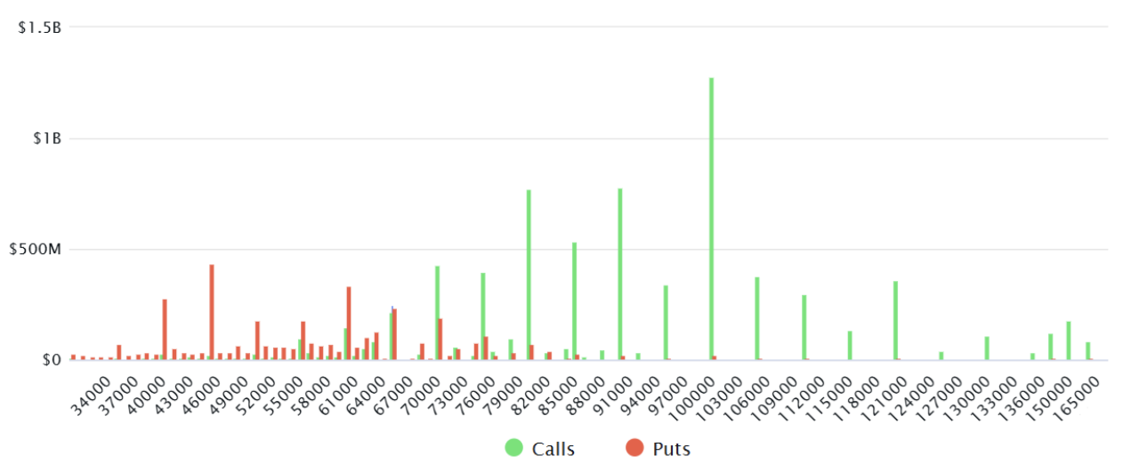 - 如果价格在 $90,000 至 $100,000 之间 :𧹒权总值攀升至 $45.2 亿,而卖权仅 $7400 万,𧹒权的优势高达 $44.5 亿。
