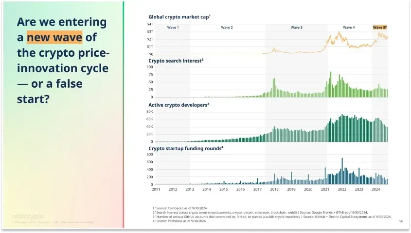 a16z Crypto 一直在强调加密货币中的价格创新周期:当价格上涨时,会吸引更多关注和开发者,开发者们会着手构建产品,从而使得加密货币随着时间的推移变得更加有价值。