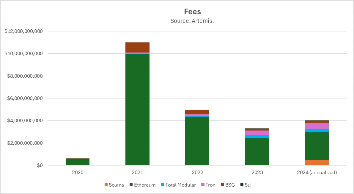 至少在短期内,模块化战略因其导致的更少的费用损害了 ETH 的价格。