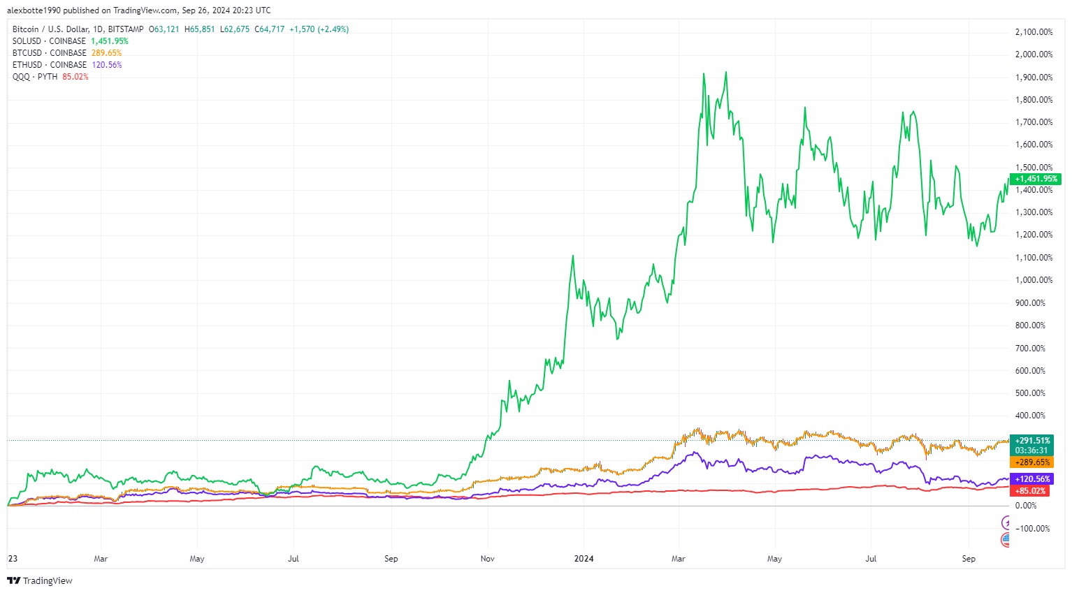 在短期内,以太坊的决定对 ETH 的价格产生了明显的影响。虽然从低谷开始,以太坊的价格仍在大幅上涨,但在某些时段,以太坊的表现不如比特币、SOL 等许多竞争对手,甚至不如纳斯达克综合指数。